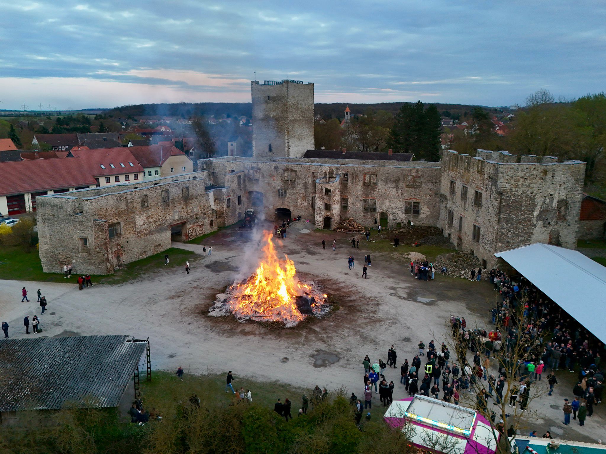 Herzliche Ostergrüße vom Osterfeuer in der Burganlage. Dieses Jahr fand endlich wieder das traditionelle Osterfeuer in Weferlingen statt. Nachdem im letzten Jahr durch die anhaltende Trockenheit das Osterfeuer ausfallen musste, konnte aufgrund der diesjährigen niedriegen Waldbrandstufe gezündet werden. Die freiwillige Feuerwehr Weferlingen hat, wie immer, die Organisation übernommen. Bei Schmorwurst, Pommes, Leberkäsbrötchen und allerlei Getränken kamen hunderte Besucher auf den Burghof. Viele nutzten das Event, um sich mit alten Bekannten und Freunden zu unterhalten.