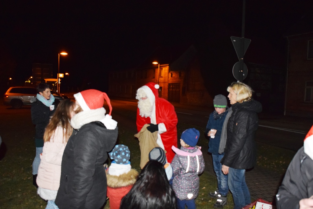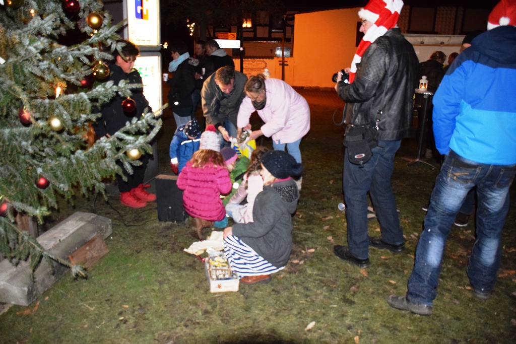 Am 08.12.2016 fand am Friedrichsplatz am Weihnachtsbaum der lebendige Adventskalender statt. Hier waren besonders viele Kinder mit ihren Eltern gekommen. Der Weihnachtsmann kam mit dem Bollerwagen, denn Schlitten war nicht möglich. Der Weihnachtsmannhelfer „Klausi“ kam mit dem Weihnachtsmotorrad.